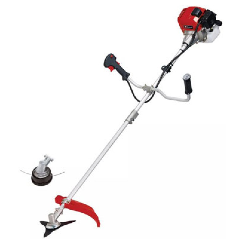 Roçadora de mato e erva Einhell com motor de 52,7 CC a 2 tempos. Potência 1,7 Hp. Largura de corte 450 mm. Fio de 2,0 mm. Disco de corte de 255 mm.