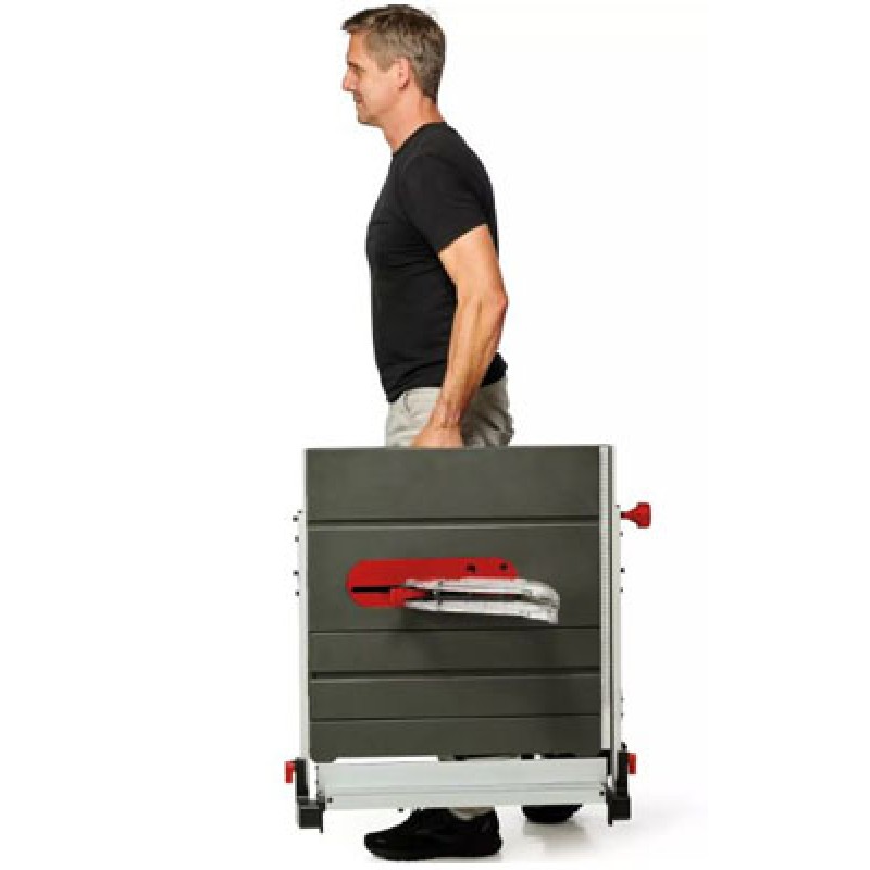 - Paralela guiada por trilho com ajuste preciso. Batente paralelo com trilho dobrável como extensão de mesa