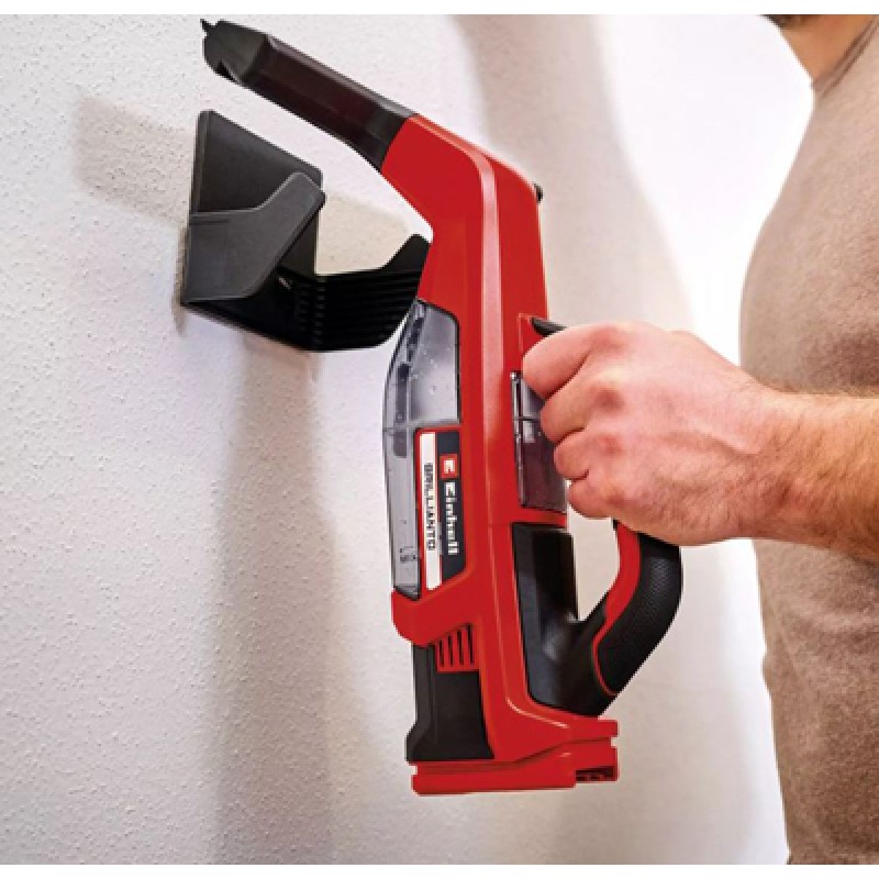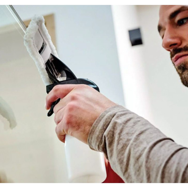 Janelas limpas sem riscos num instante – esta é a tarefa mais fácil para o limpa-vidros sem fio BRILLIANTO da Einhell. Como parte da família Power X-Change, o limpa-vidros sem fio pode ser combinado com todas as baterias e carregadores. Limpe as janelas sem fio e sem interrupções: isso é possível graças ao sistema de bateria removível Power X-Change e à tecnologia de carregamento de alta velocidade. Se a bateria utilizada estiver vazia, ela pode simplesmente ser trocada por uma cheia - portanto, não há limites para o tempo de funcionamento. O limpador de vidros sem fio BRILLIANTO vem com um borrifador com capacidade de 300 ml. O pano de microfibra incluído na entrega é anexado a ele para limpar facilmente as superfícies de vidro. A água restante é então recolhida pelo limpa-vidros através do seu bocal de sucção de 28 cm de comprimento. A interação perfeita entre o bico e a borda do rodo de silicone de peça única garante resultados sem riscos - independentemente de as superfícies de vidro serem limpas na direção horizontal, vertical ou diagonal. Isto torna o limpador de vidros sem fio versátil e não é usado apenas para limpar janelas, mas também para limpar azulejos, chuveiros, mesas de vidro, vidros e janelas no carro, grandes frentes de janelas e muito mais. Até 100 ml de o líquido pode ser coletado no tanque de água suja. O tanque pode ser completamente removido do aparelho para esvaziamento e limpeza. Graças ao seu design leve e compacto com superfícies especiais de aderência suave, o limpa-vidros assenta confortavelmente na mão sem escorregar. O interruptor liga/desliga está equipado com uma função de funcionamento contínuo para trabalhos de limpeza demorados. O limpador de janelas sem fio é armazenado facilmente e economizando espaço no suporte de parede incluído. O BRILLIANTO é entregue sem bateria e sem carregador. Eles estão disponíveis separadamente, por exemplo, como um prático conjunto inicial. Também disponíveis separadamente como acessórios práticos para o limpador de janelas sem fio BRILLIANTO da Einhell estão um conjunto de haste telescópica para limpeza de janelas altas e um conjunto de bicos para limpeza de superfícies de vidro estreitas e grandes.