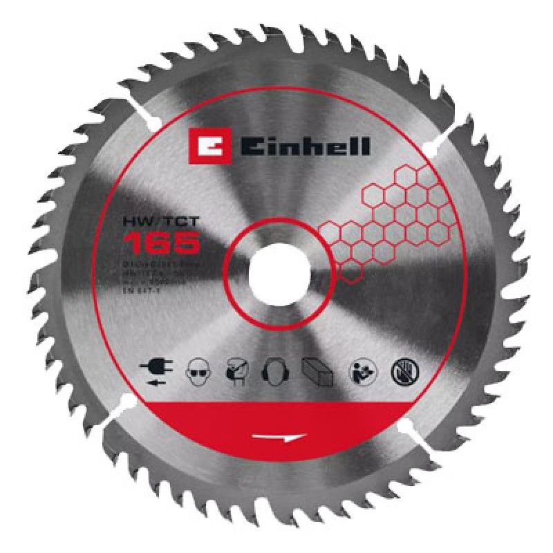 Disco de 165 mm com 56 dentes pastilhados. Serra HW/TCT. Velocidade: 5.000 rpm Corte a 45º: 42 mm Corte a 90º:56 mm
