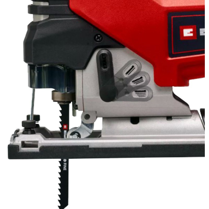 Profundidade de corte: 135 mm em madeira, 20 mm em plástico e 10 mm em aço. Com regulação angular de corte até 45º. Movimento pendular para corte mais fácil!