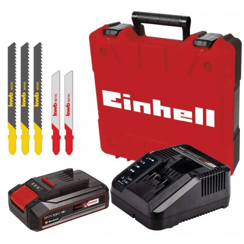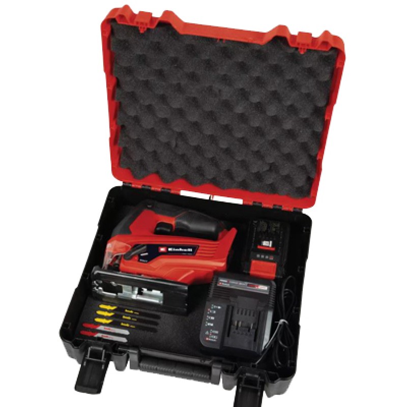 INCLUI: SERRA +CARREGADOR + BATERIA 2,5 Ah + 5 LÂMINAS PARA MADEIRA E METAL +  MALA ESTOJO