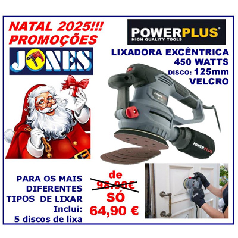 LIXADORA EXCÊNTRICA POWER PLUS 450 WATTS LIXAS VELCRO DE 125 MM
