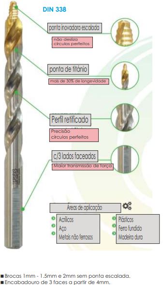 Não deslisa. Circulos perfeitos. Ponta de Titânio= mais 30% de durabilidade. Perfil rectificado=furos perfeitos.