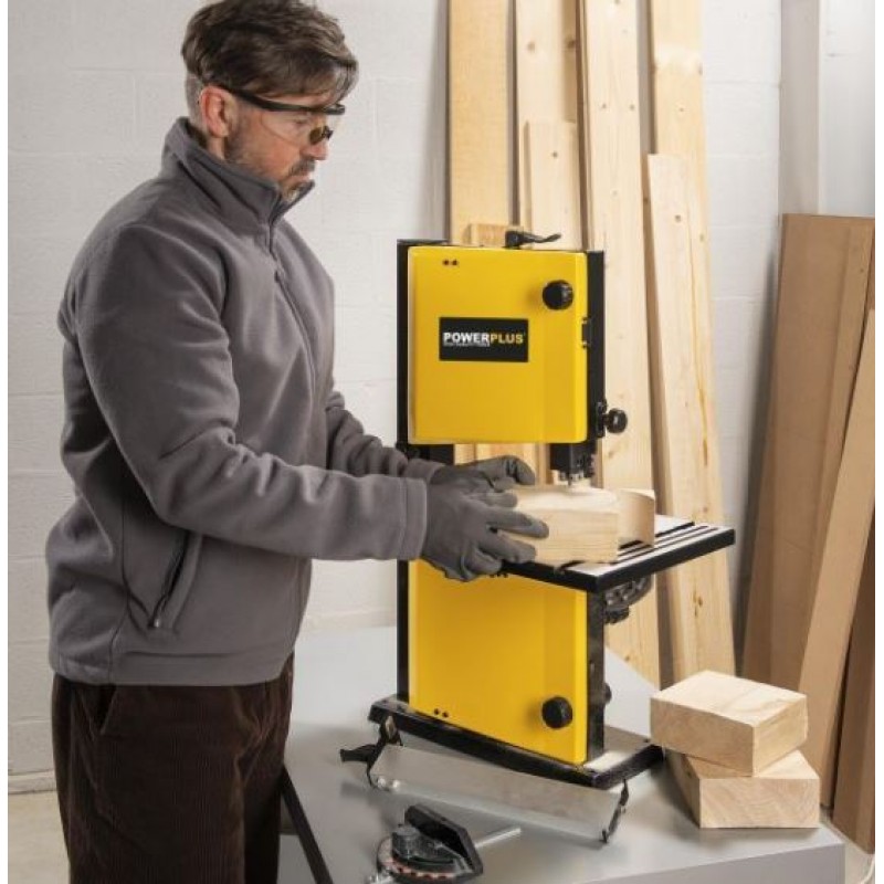 Esta potente serra de fita Powerplus de 350 W é muito útil para todos os tipos de projetos de marcenaria. É uma máquina versátil que permite trabalhar com segurança, precisão e muito pouco ruído, graças ao seu motor de indução.